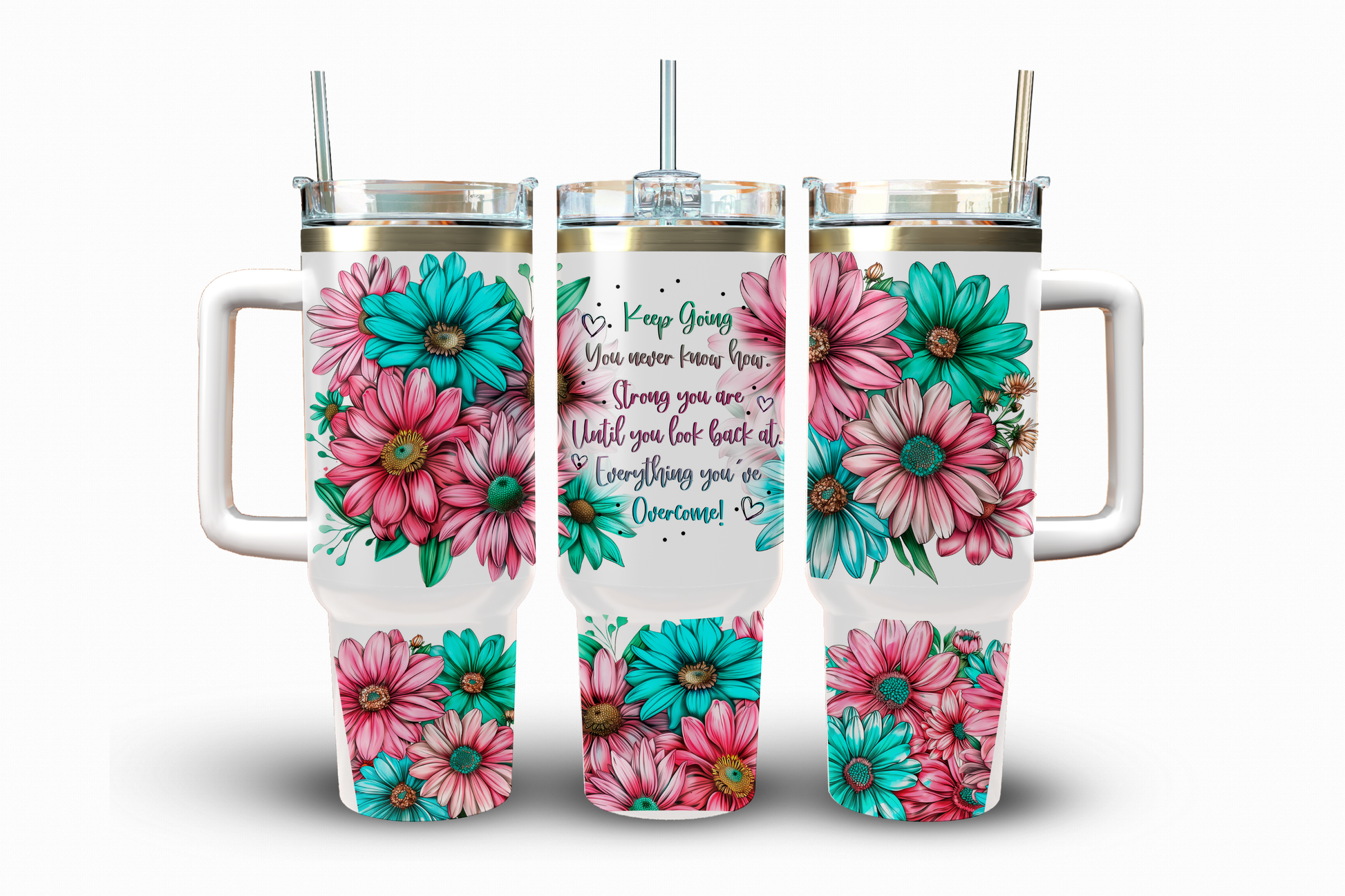 Keep Going Pink Blue Daisies Sublimation Transfer, 40 oz.